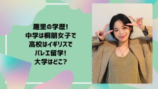 女優 趣里の学歴!中学は桐朋女子で高校はイギリスでバレエ留学!大学はどこ? 連続テレビ小説『ブギウギ』でヒロインを演じ、一躍国民的女優となった趣里さん。繊細な表現力と芯のある演技が魅力的ですが、その背景にはどのような学生時代があったのでしょうか?今回は趣里さんの学歴を見ていきましょう!趣里の学歴!趣里さんの学歴をま... 2025.09.13 女優